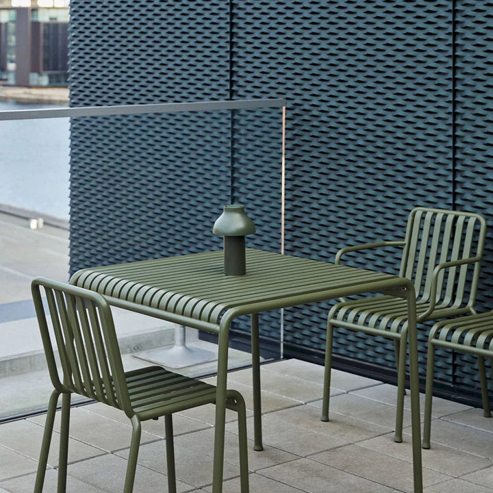 Palissade is a collection of outdoor furniture designed by Ronan and Erwan Bouroullec for HAY. The collection was designed to fit a wide variety of environments: cafés, restaurants, gardens, terraces and balconies. The construction allows a wide range of typologies with a common formal language. From stools and benches to chairs and tables, lounge chairs and sofas – the collection comprises 13 different elements, united not only by their graphical image but also by their common characteristics: they are strong without being bulky, elegant without being fragile.