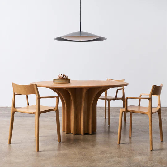 Named after its distinctive scale and slimline silhouette, Broad is a classic yet contemporary pendant that creates intimacy in even the largest of spaces. Offering a soft diffusion of light with an ambient, even glow, Broad was designed to be placed above the centre of a table – from dining to meeting. Striking enough to command attention yet streamlined enough to fit in within any space, Broad does more than just illuminate; it centres conversations, focus and atmosphere. With a single stem-like hanging point, Broad is available with either a 500mm or 800mm width diameter.