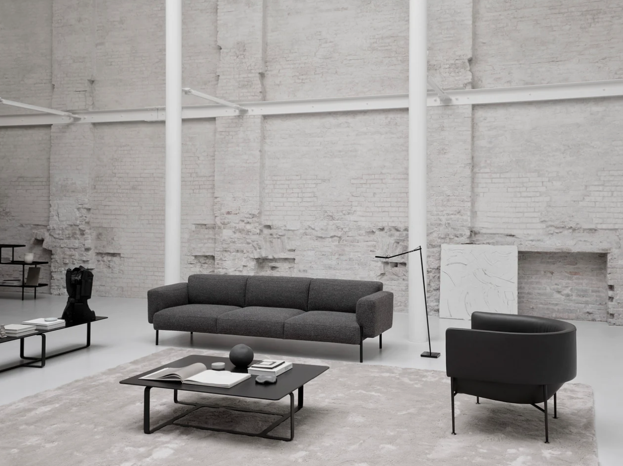 Like the collar of a fine shirt, the back of the Collar Chair runs around the design, creating a sense of cocooning comfort when seated. Available in two sizes, the generously sized shell is distinguished by richly upholstered detailing in the form of stitching and pleats. With sophisticated, slender legs in black burnished steel, the design infuses its surroundings with its powerful presence.