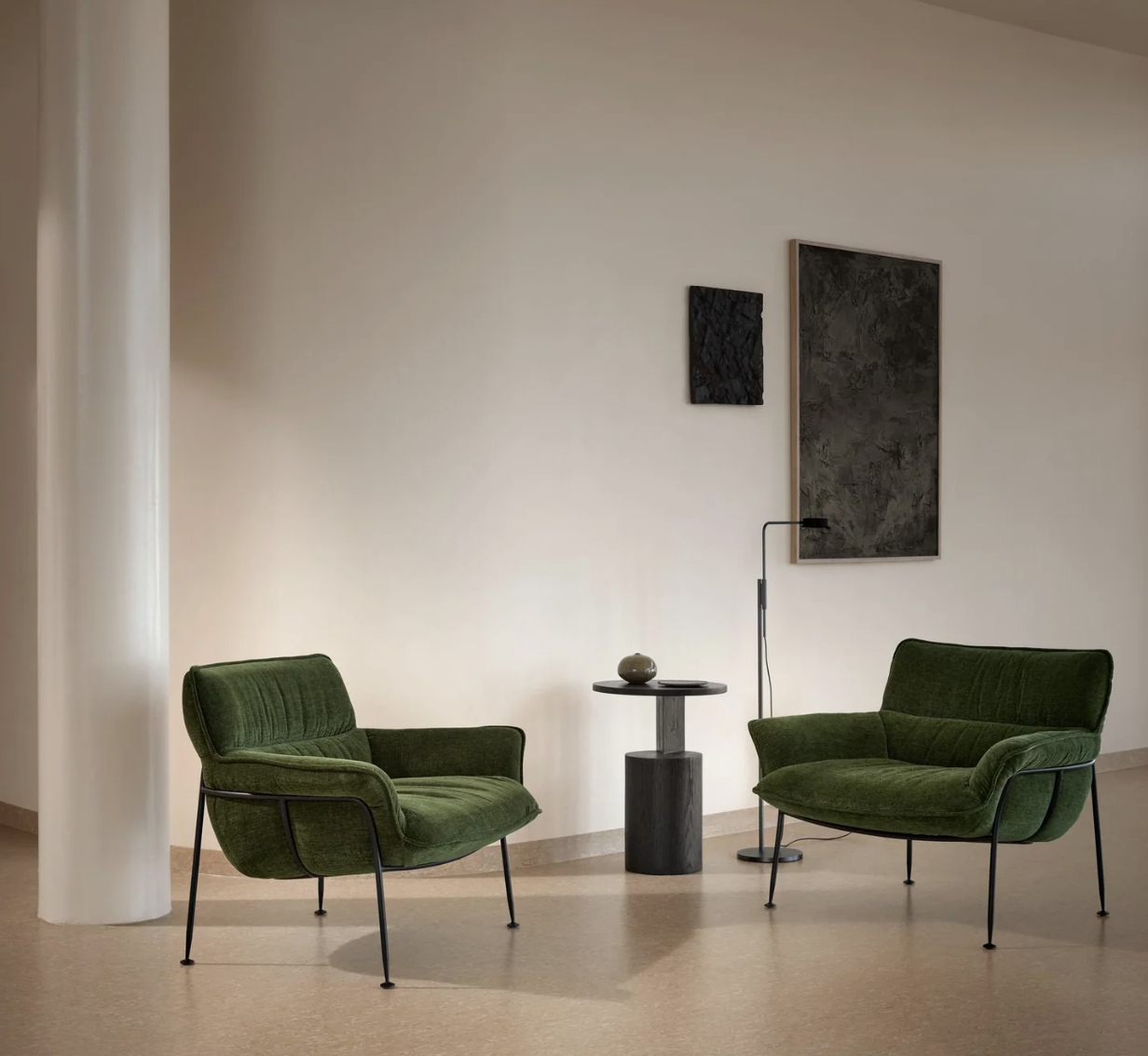The Duvet Lounge Chair, crafted by the Norwegian designer duo Skogstad & Wærnes, promises a luxurious seating experience. The lounge chair boasts a single tailored upholstery piece, draped over its form like a sumptuous coat, complete with pinch seam stitching that outlines its distinctive shape.